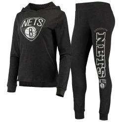 Budget 𧨠Women's Concepts Sport Black Brooklyn Nets Hoodie & Pants Sleep Set βοΈ